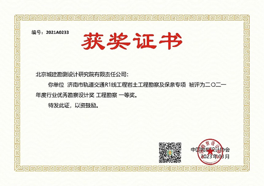 北京城建勘测设计研究院荣获多项大奖!