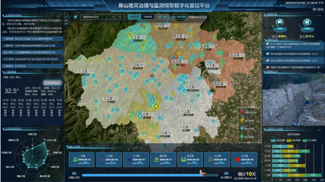 我院自主研发打造生态环境治理与监测预警数字化管控平台,实现地灾和生态环境整治施工管理、隐患监测预警、生态环境大数据收集的“一体化管控平台”。