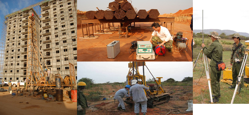 安哥拉社会住房项目建设场地位于安哥拉共和国(The Republic of Angola)首都罗安达省(Luanda)南部Kilamba Kiaxi 区,距离罗安达市区约20 公里,占地面积约16.2 平方公里。一期工程位于安哥拉社会住房项目建设场地北部,占地面积约8.5 平方公里。北京城建彩运网承担了中央景观带以东共13 个地块及净水厂、取水线路、高压泵房的岩土工程勘察、地基检测、沉降观测和水源井施工等工作。