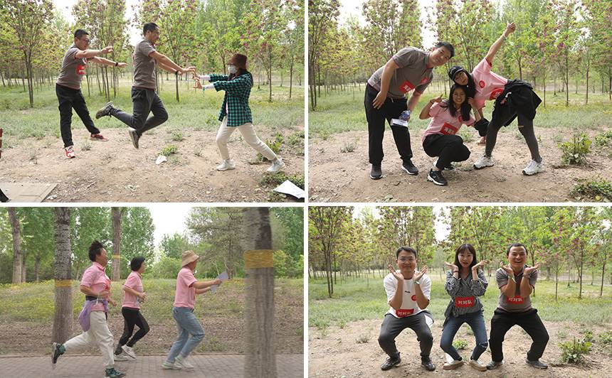 本次活动充分利用东小口森林公园内部景观,共设置了6处打卡点,打卡顺序由参赛队伍自行设计。在不同打卡点,院团总支精心设计了“党建知识问答”“团建知识问答”和“双人跳绳”“三人四足折返跑”“造型摆拍”“丛林寻宝”6种颇具特色的趣味游戏。五月的北京,郁郁葱葱、鸟语花香,处处散发着蓬勃朝气,大家在这优美的环境中团结协作、奋勇争先,欢笑声此起彼伏。