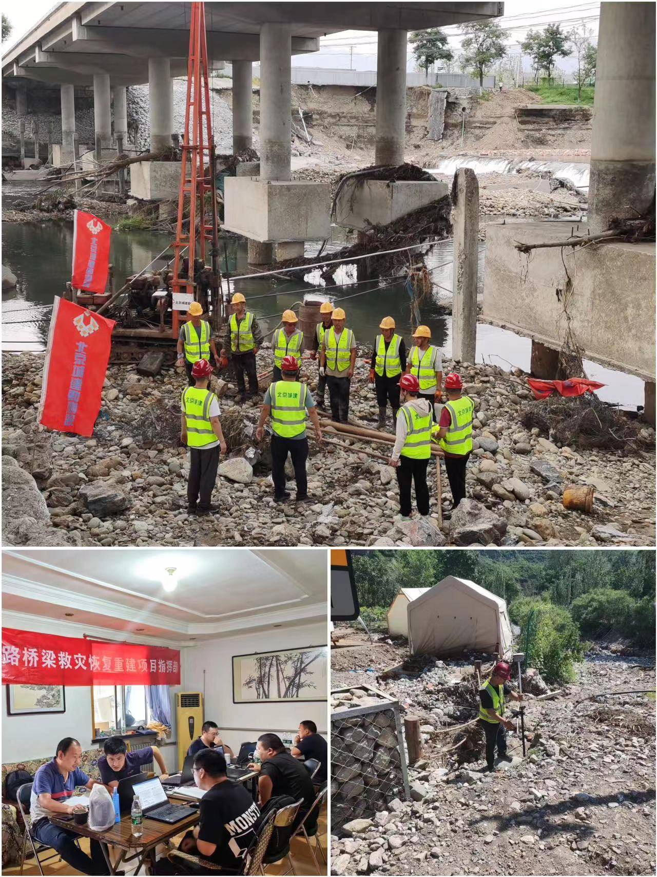 7月29日至8月2日,北京地区房山、门头沟、怀柔等地出现历史罕见的极端强降雨灾害,灾区多条道路和桥梁损毁严重,应急抢险刻不容缓。北京城勘院闻“汛”而动、迎难而上,接到任务后第一时间抽调技术力量赶赴灾区,先后投入救灾抢险人员150余人,钻机28台、GPS设备10台、全站仪2台、保障车辆12辆,为灾后重建提供第一手勘测资料。与此同时,连夜组织、紧急筹措救灾物资驰援房山十渡镇、蒲洼乡,将关心和祝福送到灾区群众手中。