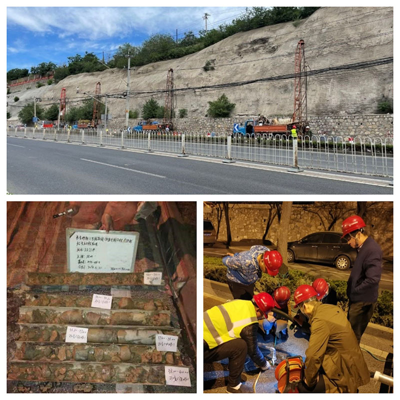 北京城勘院参与了新开通3条线路全线的勘察、第三方测量,17号线北段全线的第三方监测、16号线剩余段及苏州街站工程降水设计工作。面对沿线环境条件复杂、地下水丰富,施工难度大的挑战,北京城勘院采用地质调查、综合物探、钻探(含水平钻探)与室内试验、岩石薄片电镜等多种勘察测试手段和专项研究,准确查明了沿线不良地质作用和特殊性岩土,并根据工程特点提出了经济合理的建议,为设计和施工规避风险。