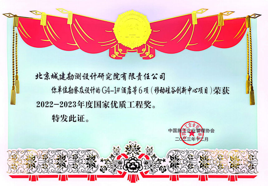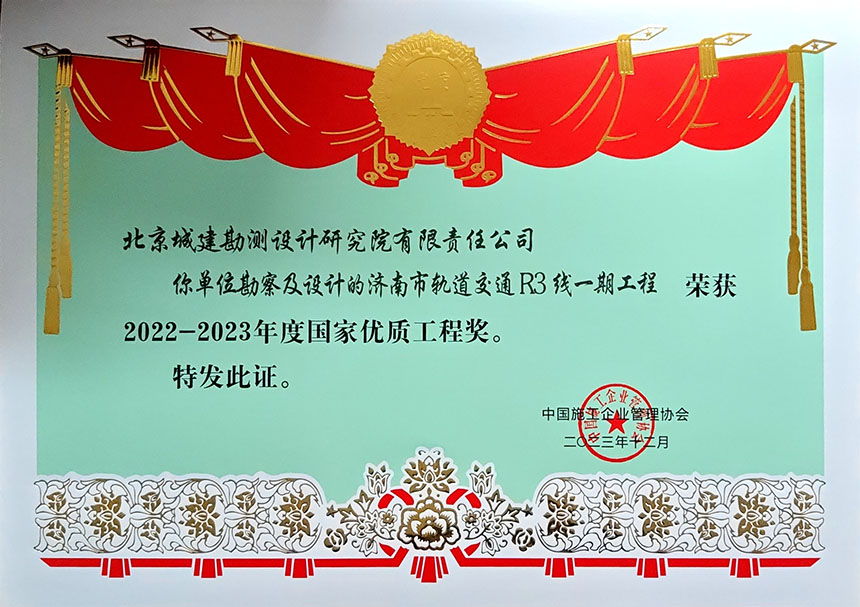 2022-2023年度国家优质工程奖获奖名单出炉,北京城勘院参与建设的5项工程榜上有名。“北京环球影城主题公园(一期)项目”获得国家优质工程金奖,“洛阳职业技术学院新校区一期一组团图文信息中心及地下车库(一)一期”“G4-1#酒店等6项(移动硅谷创新中心项目)”“济南市轨道交通R3线一期工程”“南宁市轨道交通5号线一期工程”4项重点工程获得国家优质工程奖。在公布的第二十届第一批中国土木工程詹天佑奖获奖名单中,北京城勘院参建的南宁市轨道交通3号线一期工程(科园大道-平乐大道)金榜题名。