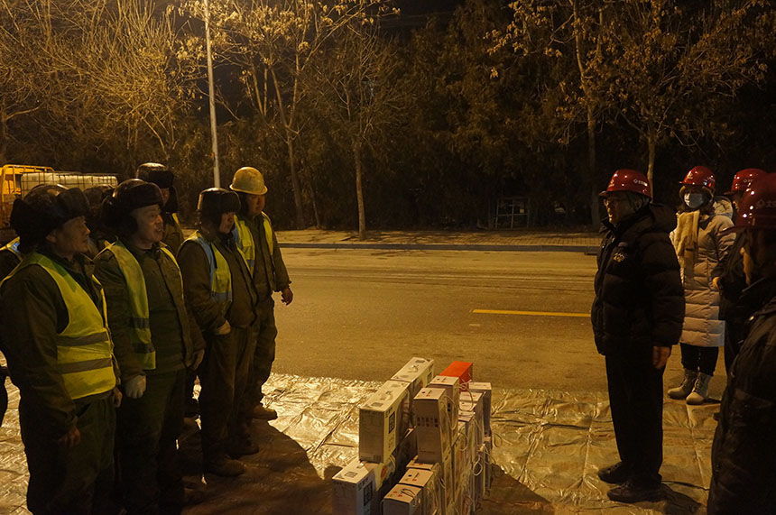 之后,为一线员工发放了保温杯、自发热暖贴等防寒保暖慰问品,送去了组织的关心和问候。