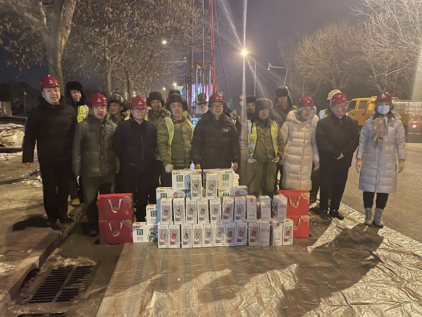 马主席一行到达项目现场后,首先转达了党委书记、董事长马海志和院长王思锴对大家的关心与问候,对大家的辛勤付出表示诚挚的感谢!之后,实地察看作业现场,深入了解项目情况、实施进度以及一线员工的工作和生活情况,与项目技术人员和作业人员进行亲切交流。马主席叮嘱大家,一是由于冬季夜间施工,工地现场危险源较多,一定要以安全为前提,既做好工程安全的各项保障,也要做好自身的安全;二是近来天气十分寒冷,一定要做好防寒保暖工作,避免发生冻伤和感冒发热的情况;三是本工程是北京地铁重点工程,一定要保质保量完成好任务,为优质工程打好基础。在2024年新年即将到来之际,马主席为大家送上了新年祝福:祝大家在新的一年里,工作顺利,身体健康,阖家幸福!