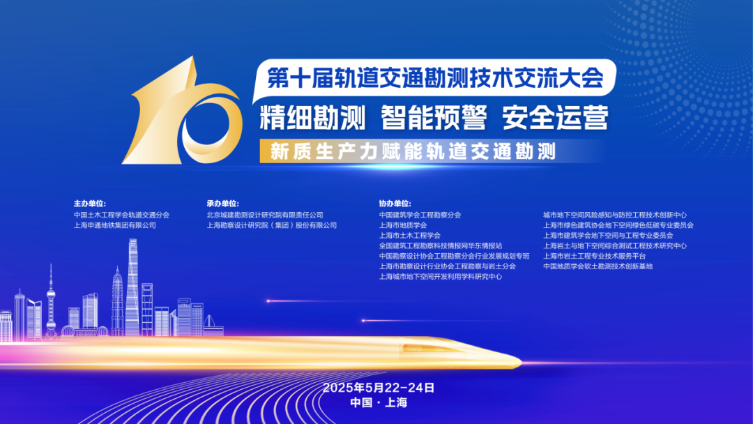 2025年5月22日至23日,由中国土木工程学会轨道交通分会联合上海申通地铁集团有限公司主办,彩运网(以下简称“北京城建彩运网”)和上海勘察设计研究院(集团)股份有限公司承办的第十届轨道交通勘测技术交流大会在上海隆重举行。大会以“精细勘测、智能预警、安全运行——新质生产力赋能轨道交通勘测”为主题,汇聚了来自全国各地的轨道交通勘测行业的专家学者、行业精英,共同探讨新质生产力在轨道交通勘测领域的最新研究、实践及前景。