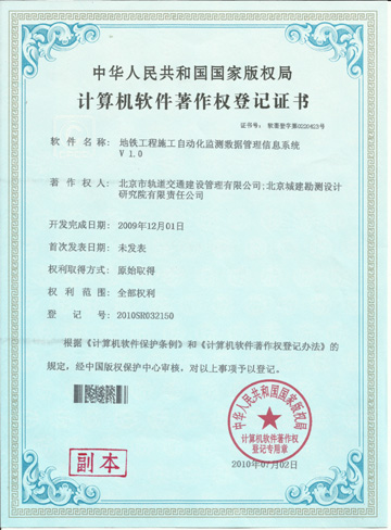 地铁工程施工自动化监测数据管理信息系统(2010年)