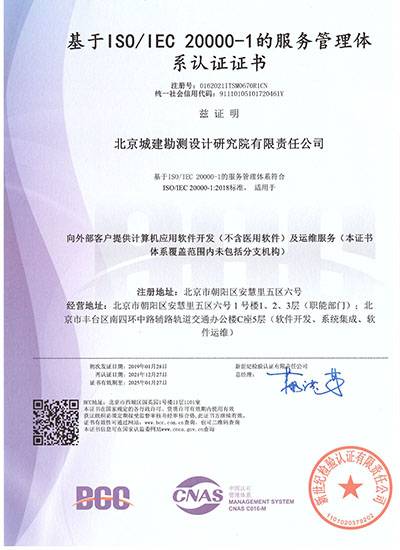 基于ISOIEC 20000-1的服务管理体系认证证书