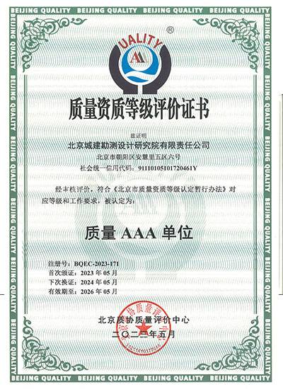 质量资质等级评价证书-质量AAA级单位