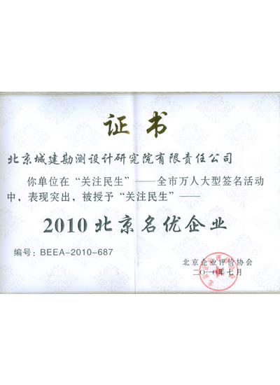 关注民生2010北京名优企业(2010年)