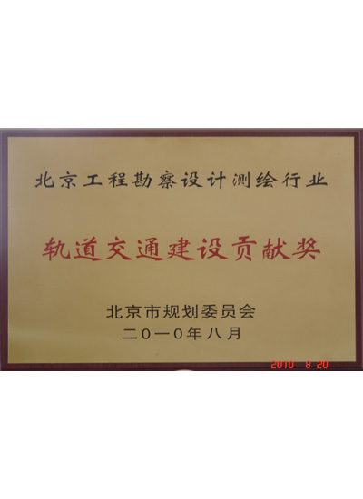 北京市规划委 轨道交通建设贡献奖(2010年)