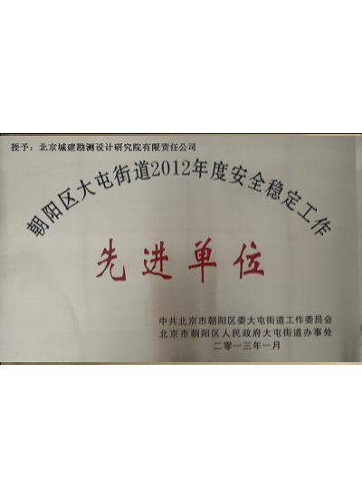 朝阳区大屯街道2012年度安全稳定工作先进单位