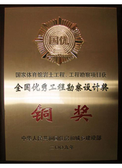 国家体育馆全国优秀工程勘察铜奖(2009年)