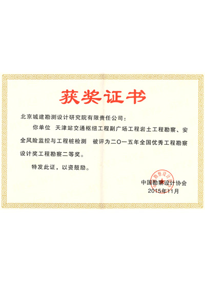 全国工程勘察设计工程勘察二等奖(2015年)