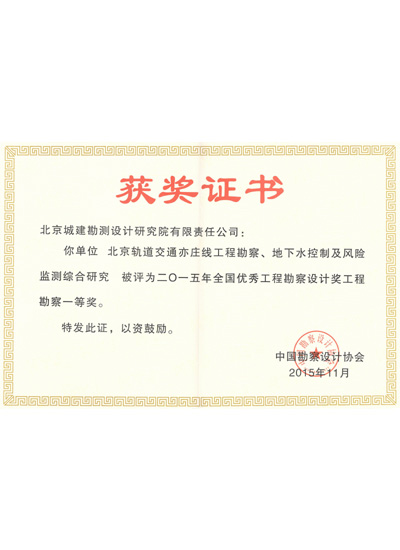 全国工程勘察设计工程勘察一等奖(2015年)