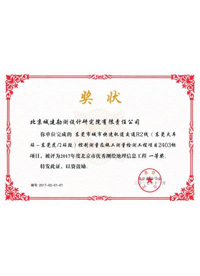 北京市优秀测绘地理信息工程一等奖(2017)