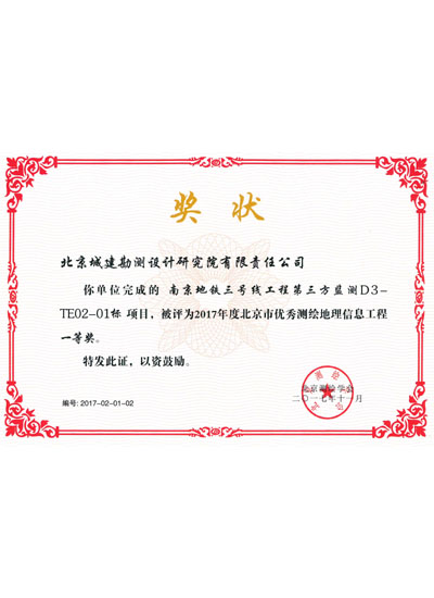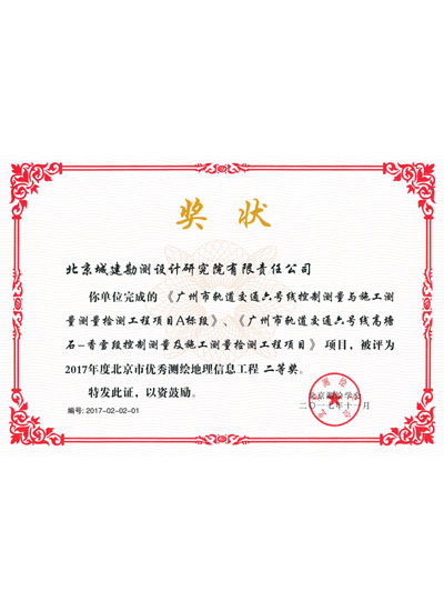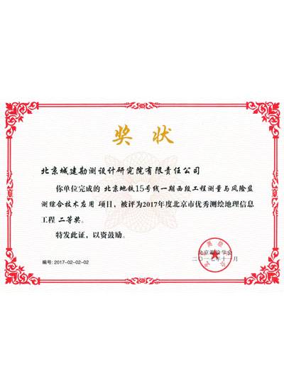 北京市优秀测绘地理信息工程二等奖(2017)